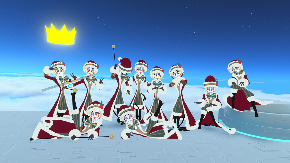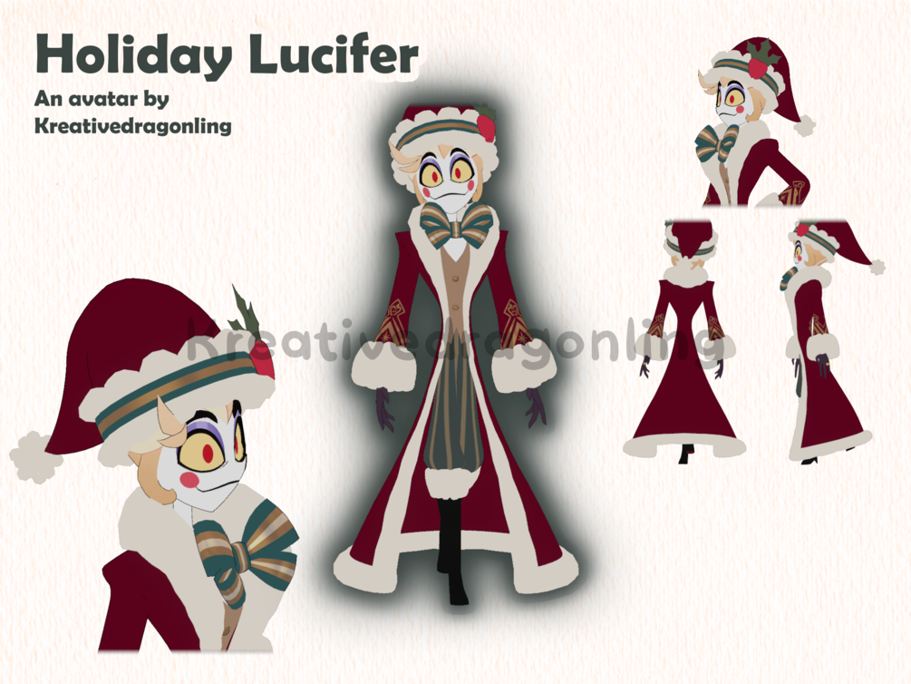 All rights to Lucifer's design belong to A24 and Spindlehorse. The Christmas outfit in particular was designed by: https://x.com/kanomareki (you should go check out their art!). This is NOT an official model, merely a fan creation.